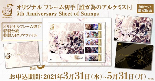 誰ガ為のアルケミスト の5周年を記念したオリジナルフレーム切手セットの申し込み受付がスタート